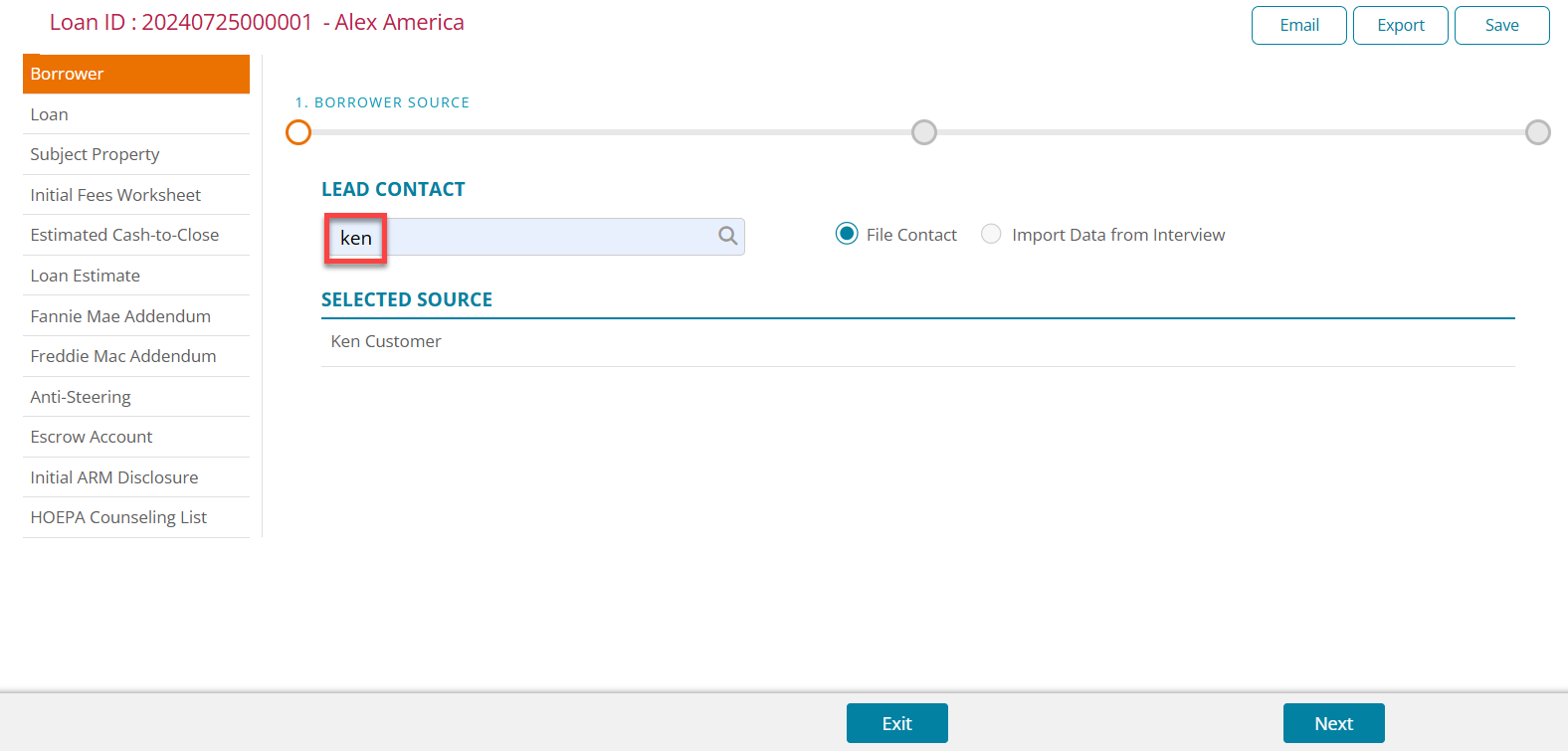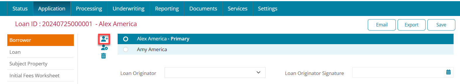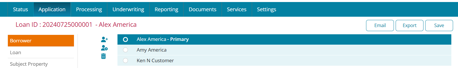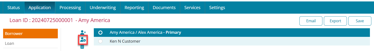 A radio button will appear under the Primary borrower’s name. The radio button allows the user to choose between borrowers that are added to the loan.