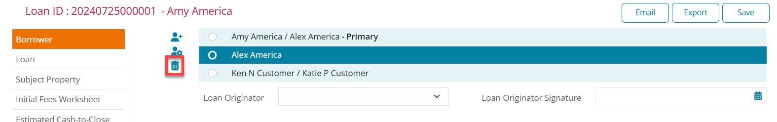 Note: The primary borrower cannot be deleted if other borrowers are note listed on the loan.