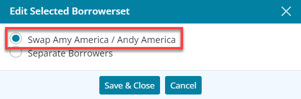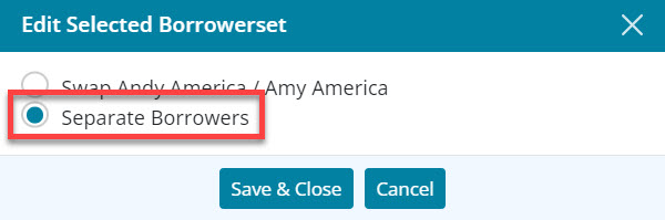 Note: Separate a borrower set to enable deleting a borrower from the loan.